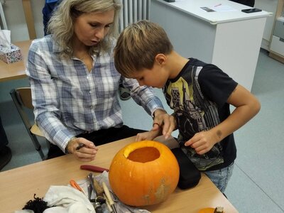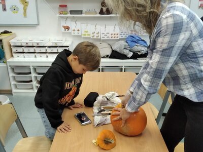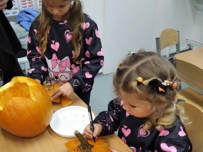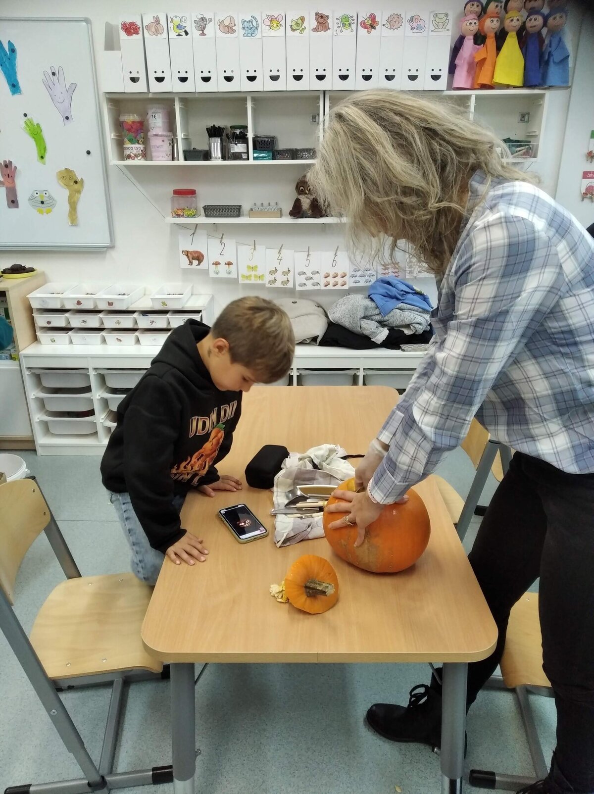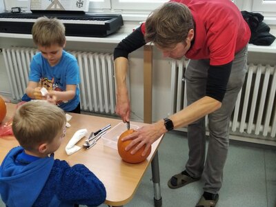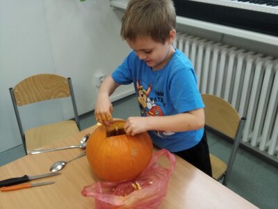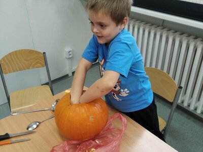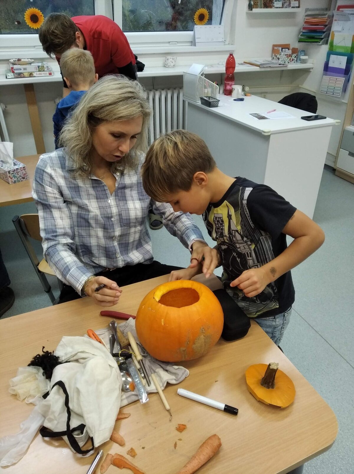 Ve čtvrtek v půl čtvrté jsme se sešli s rodiči a dětmi v naší třídě, abychom se pustili do vyřezávání podzimních dýní. Užili jsme si příjemné a tvořivé společné odpoledne, za které děkujeme.