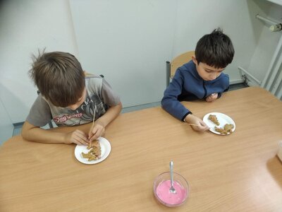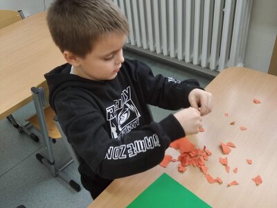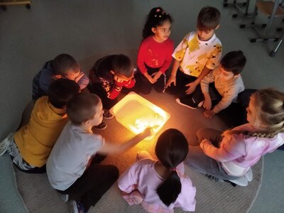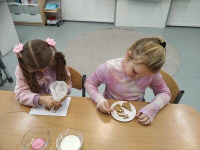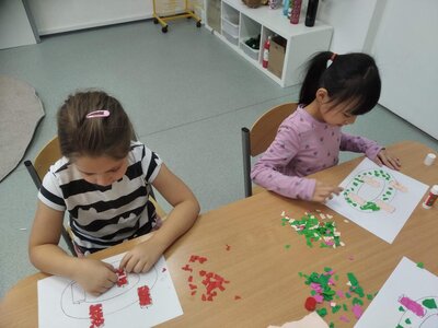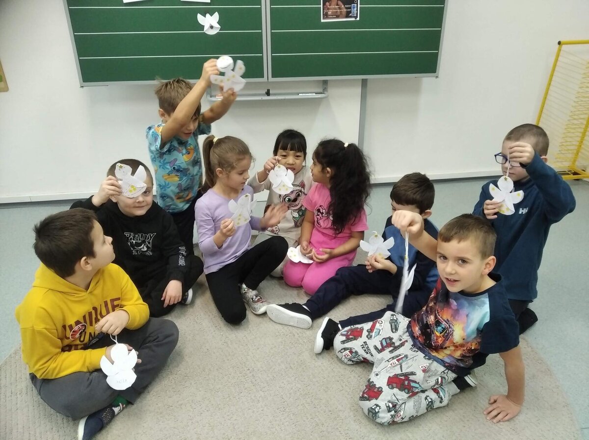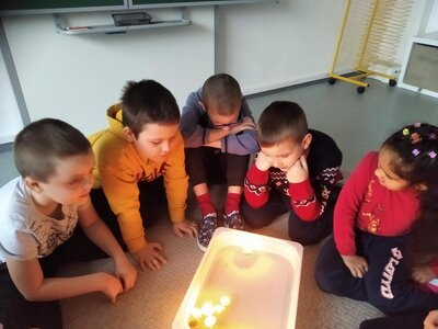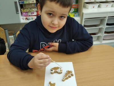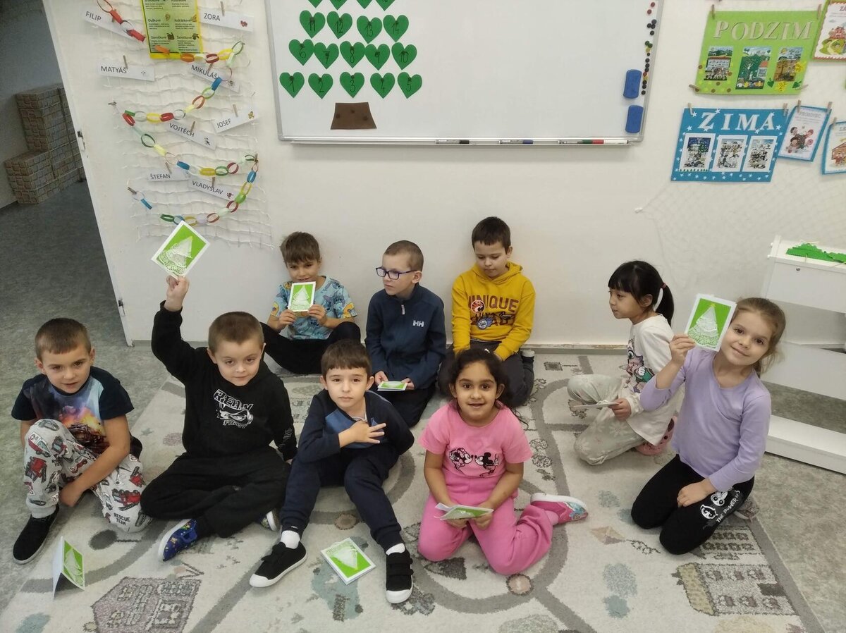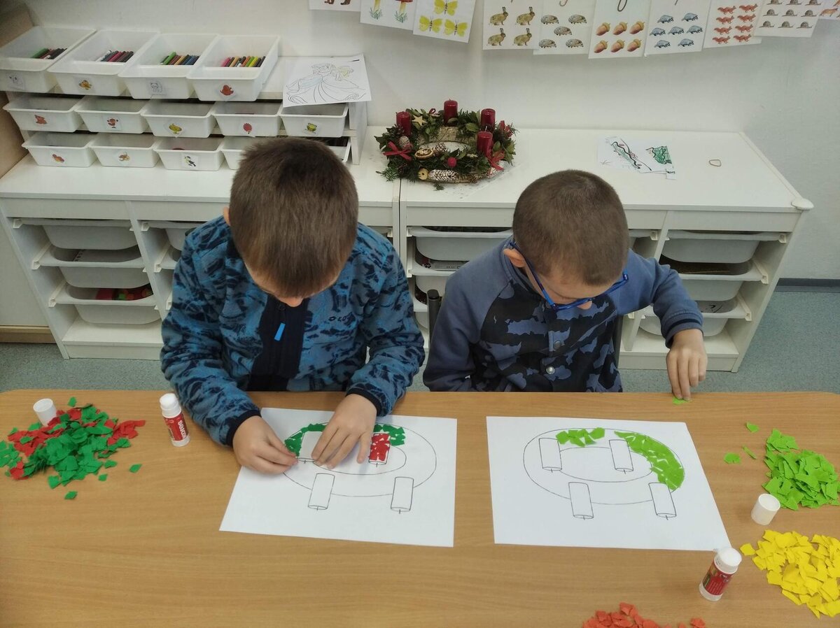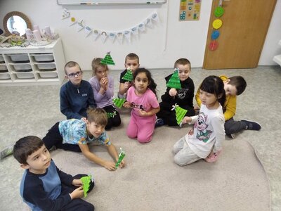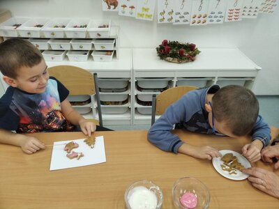 V tomto měsíci jsme si povídali především o adventu. Ozdobili jsme si stromeček, paní asistentka nám vyrobila krásný adventní věnec, na kterém jsme každé pondělí zapalovali odpovídající počet svíček. Víme, že adventní neděle jsou 4 a každá má své jméno. Povídali jsme si o vánočních tradicích a seznamovali se s těmi, které dodržujete doma. My jsme např. stavěli Betlém, prohlíželi si jmelí, rozkrajovali jablíčko, tvořili vánoční stromečky, věnce a kapříky. Prohlíželi si pravé rybí šupiny a pomocí špejlí zdobili perníčky. Poslední školní den jsme věštili budoucnost pomocí hrníčků a pouštěli vánoční lodičky.