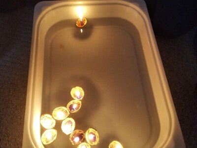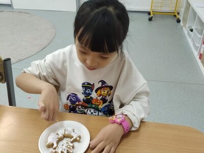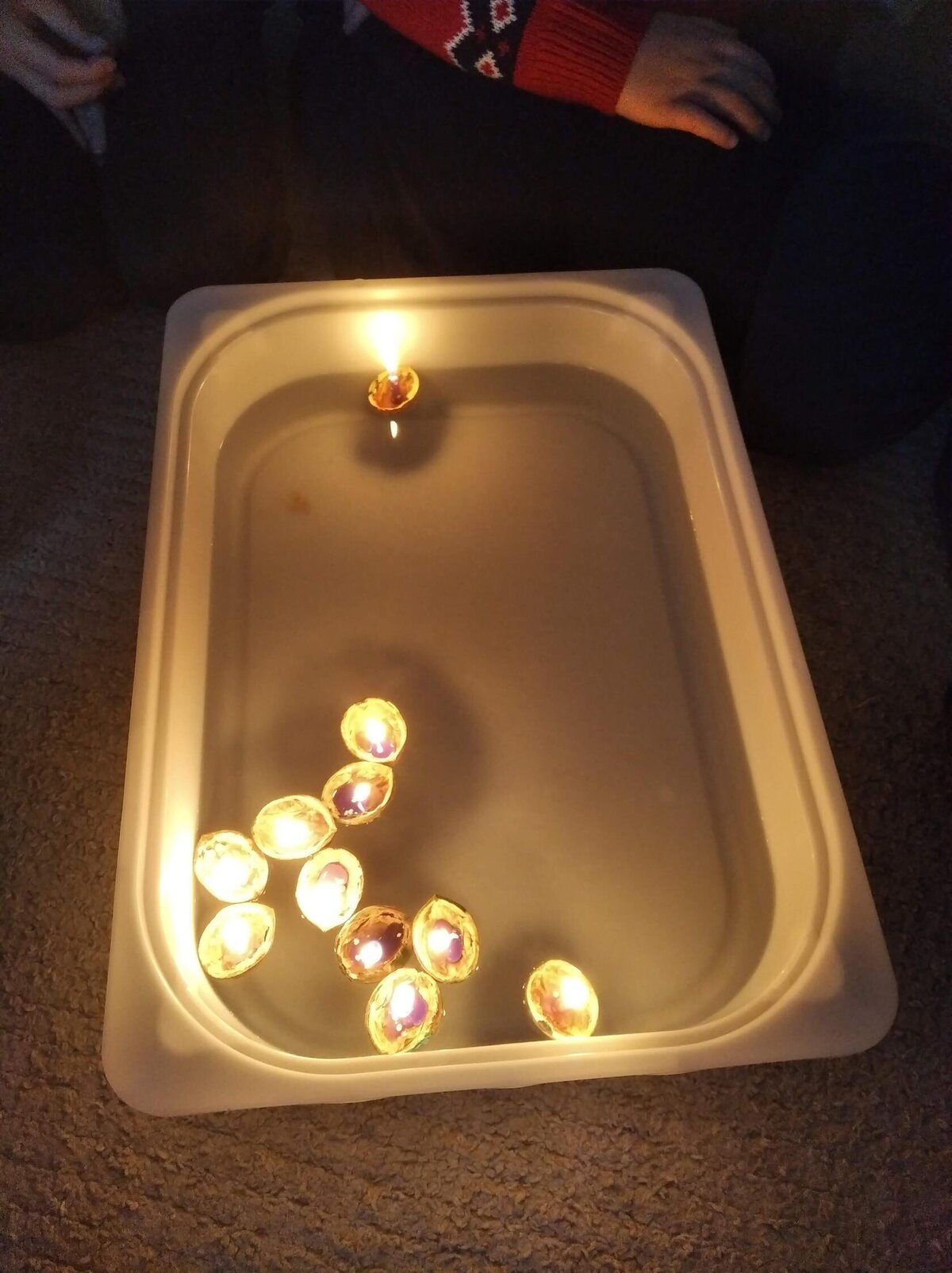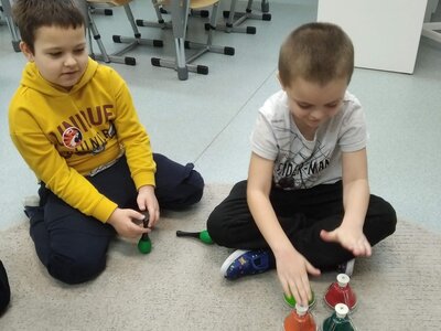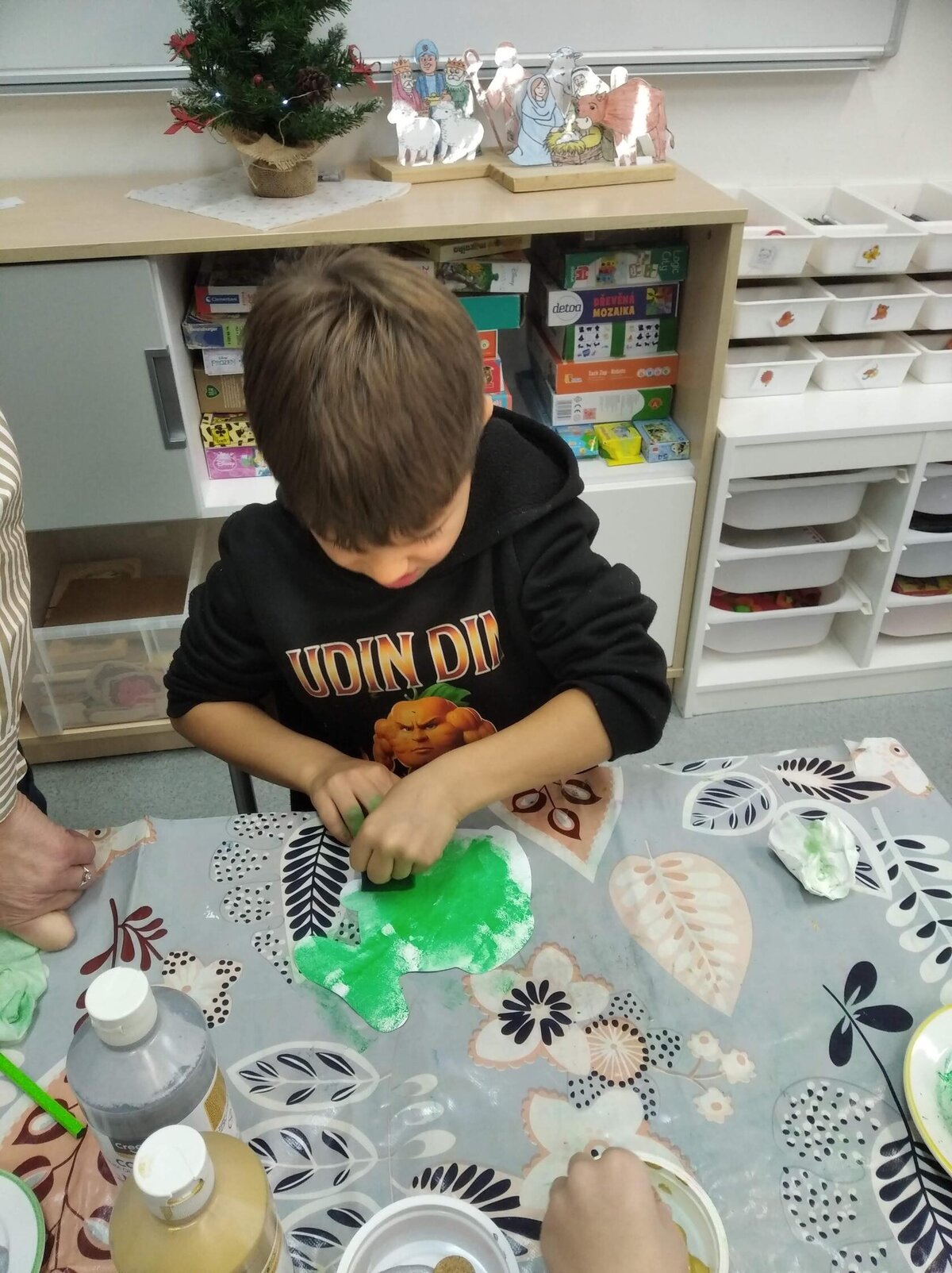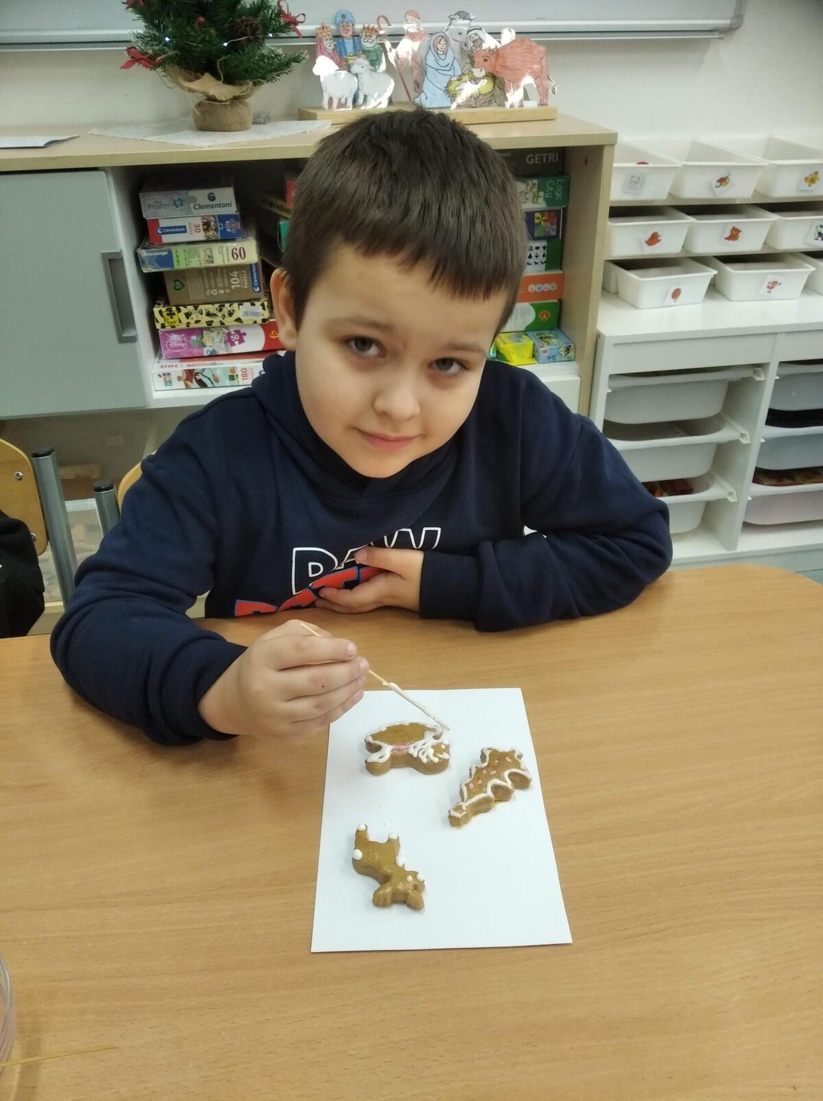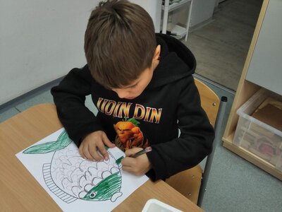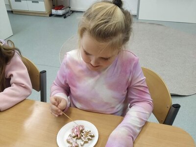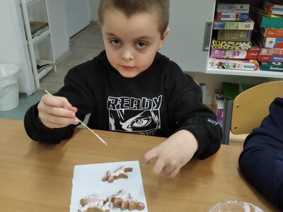 V tomto měsíci jsme si povídali především o adventu. Ozdobili jsme si stromeček, paní asistentka nám vyrobila krásný adventní věnec, na kterém jsme každé pondělí zapalovali odpovídající počet svíček. Víme, že adventní neděle jsou 4 a každá má své jméno. Povídali jsme si o vánočních tradicích a seznamovali se s těmi, které dodržujete doma. My jsme např. stavěli Betlém, prohlíželi si jmelí, rozkrajovali jablíčko, tvořili vánoční stromečky, věnce a kapříky. Prohlíželi si pravé rybí šupiny a pomocí špejlí zdobili perníčky. Poslední školní den jsme věštili budoucnost pomocí hrníčků a pouštěli vánoční lodičky.