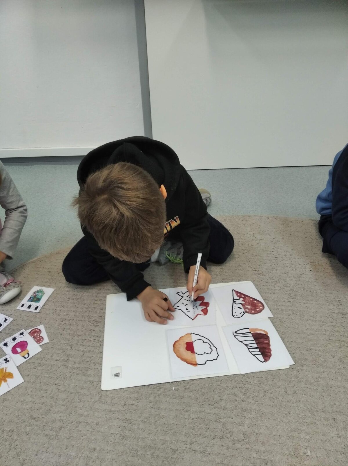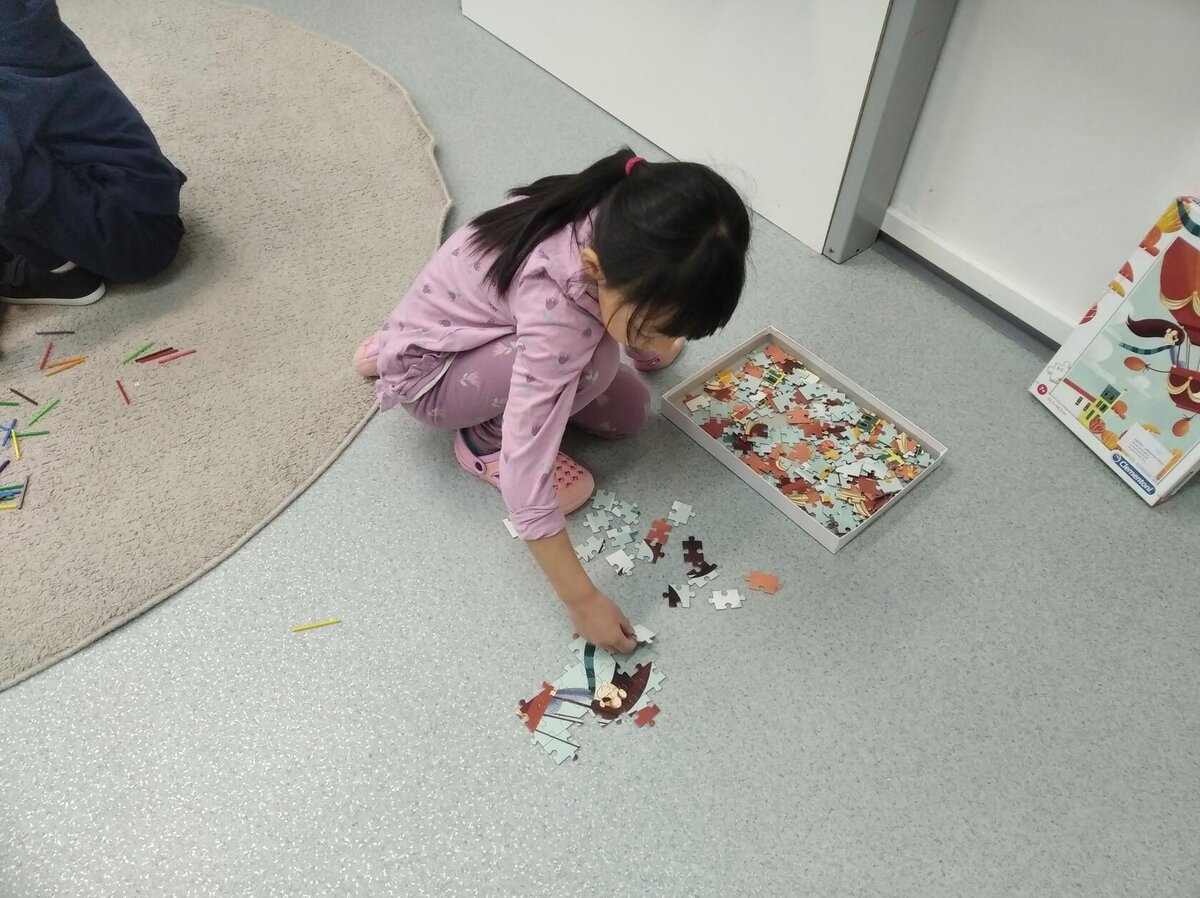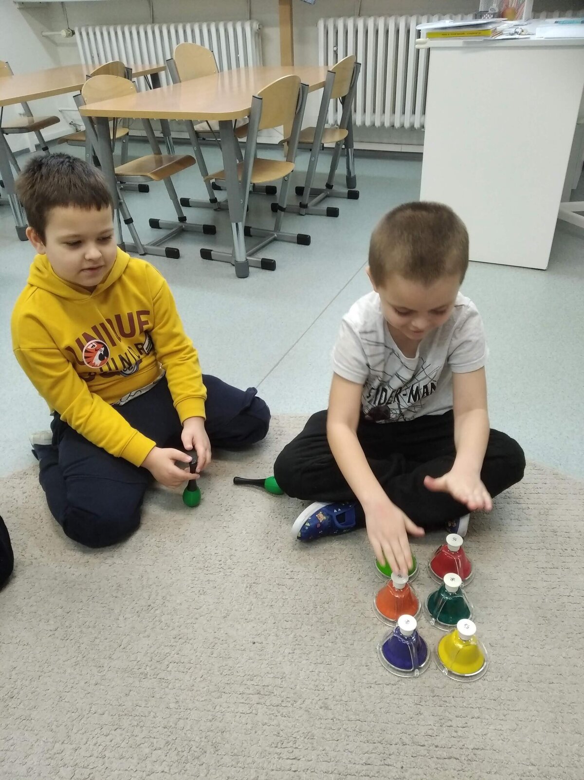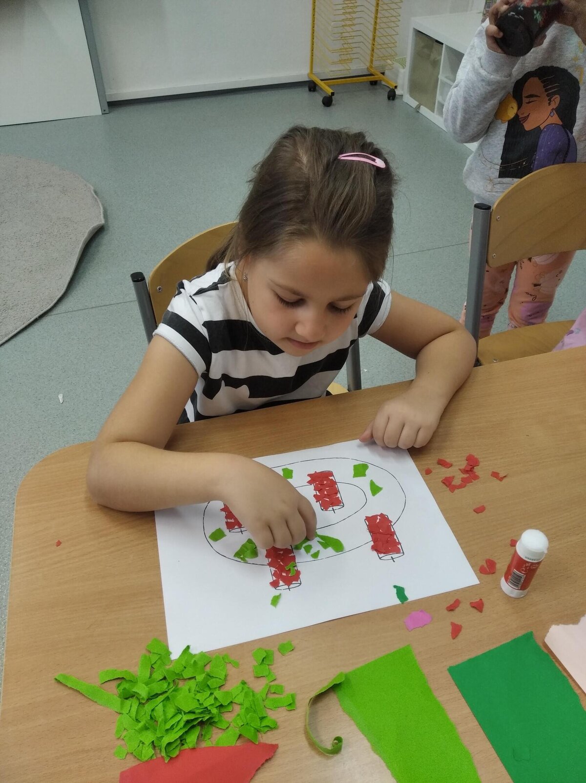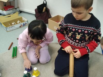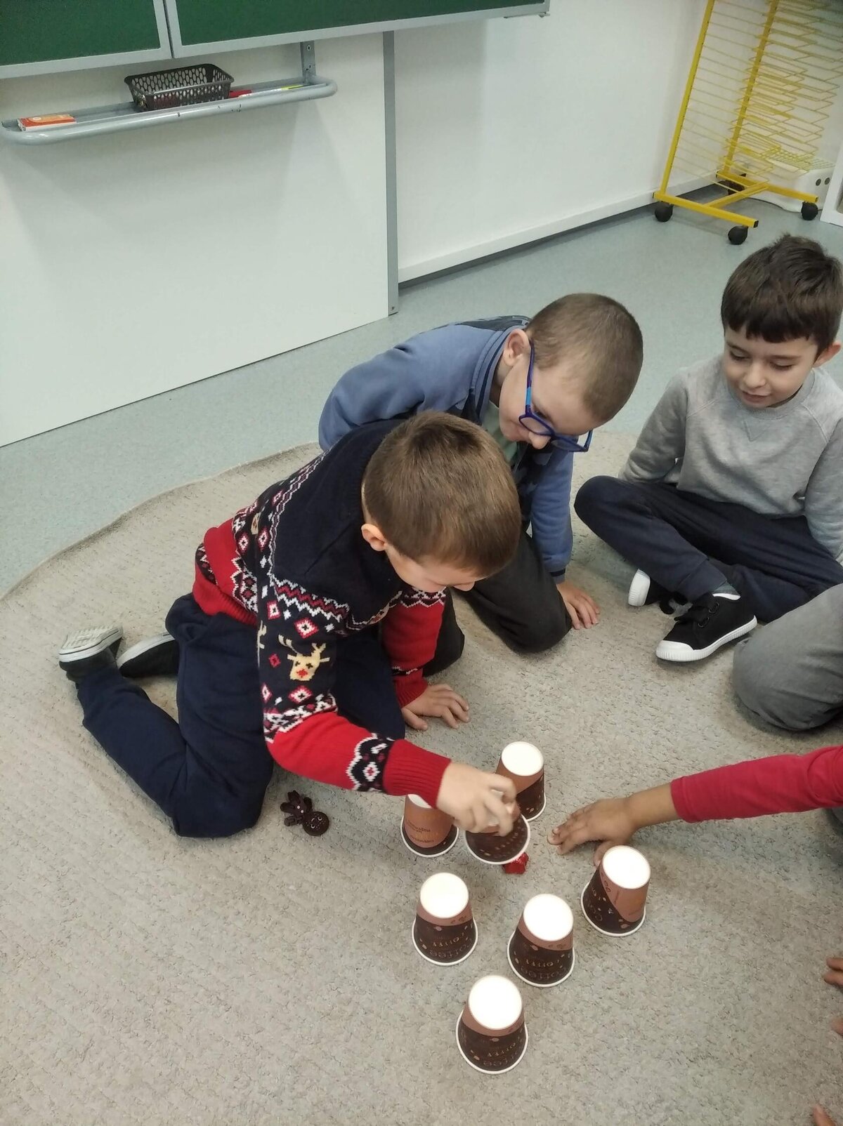 Nezaháleli jsme ani s učením. Ve zrakovém vnímání jsme trénovali barevné řady, hráli Kimovu hru, překreslovali čárky mezi body a dokreslovali chybějící části na obrázcích. Grafomotorické prvky jsme procvičovali na velké tabuli, na stíratelných tabulkách i na papíře. Zaměřili jsme se na čerty a anděly, jednotažky a horní oblouky. V oblasti matematického vnímání jsme počítali rozinky na cukroví, přiřazovali správně počty k puntíkům a počítali pomocí ořechů. Řečové dovednosti jsme rozvíjeli při práci s knížkou a průběžně procvičovali slabiky i počáteční hlásky. Vyzkoušeli si Orffovy hudební nástroje a poznali kouzlo zvonečků, kterému patří vždy jeden tón.