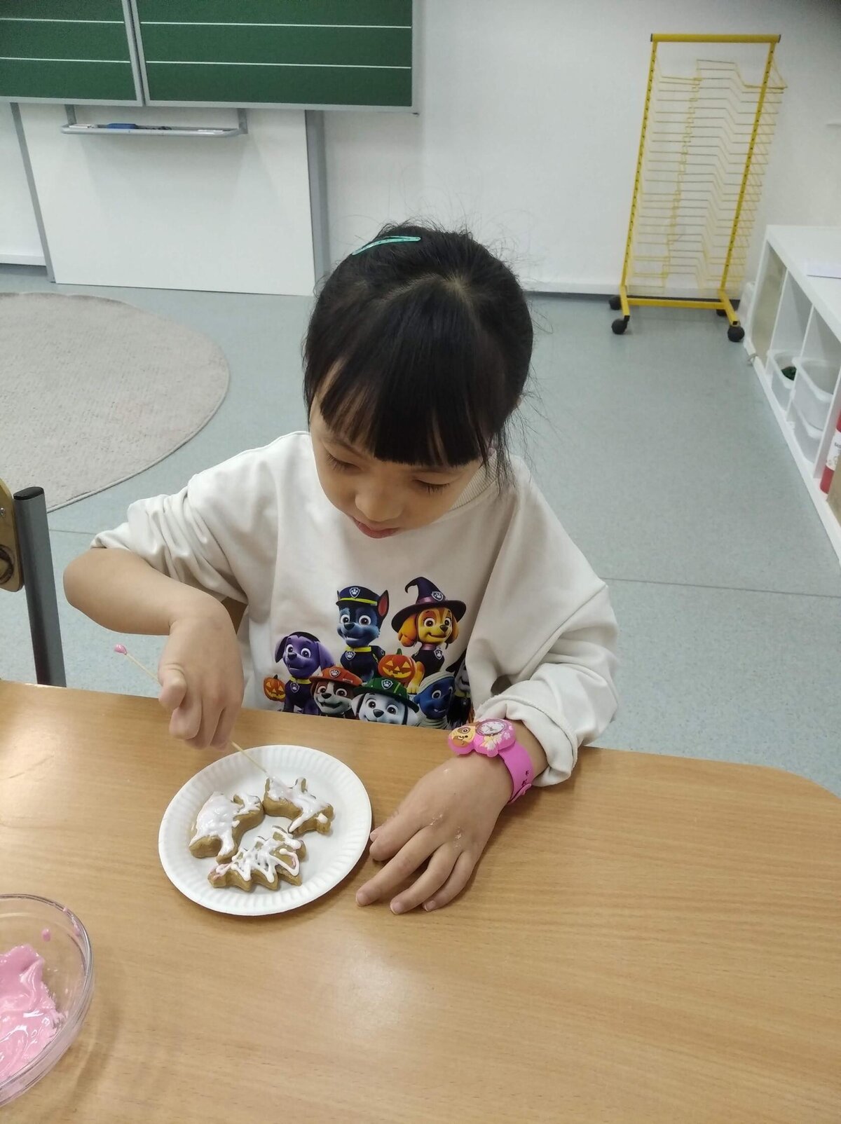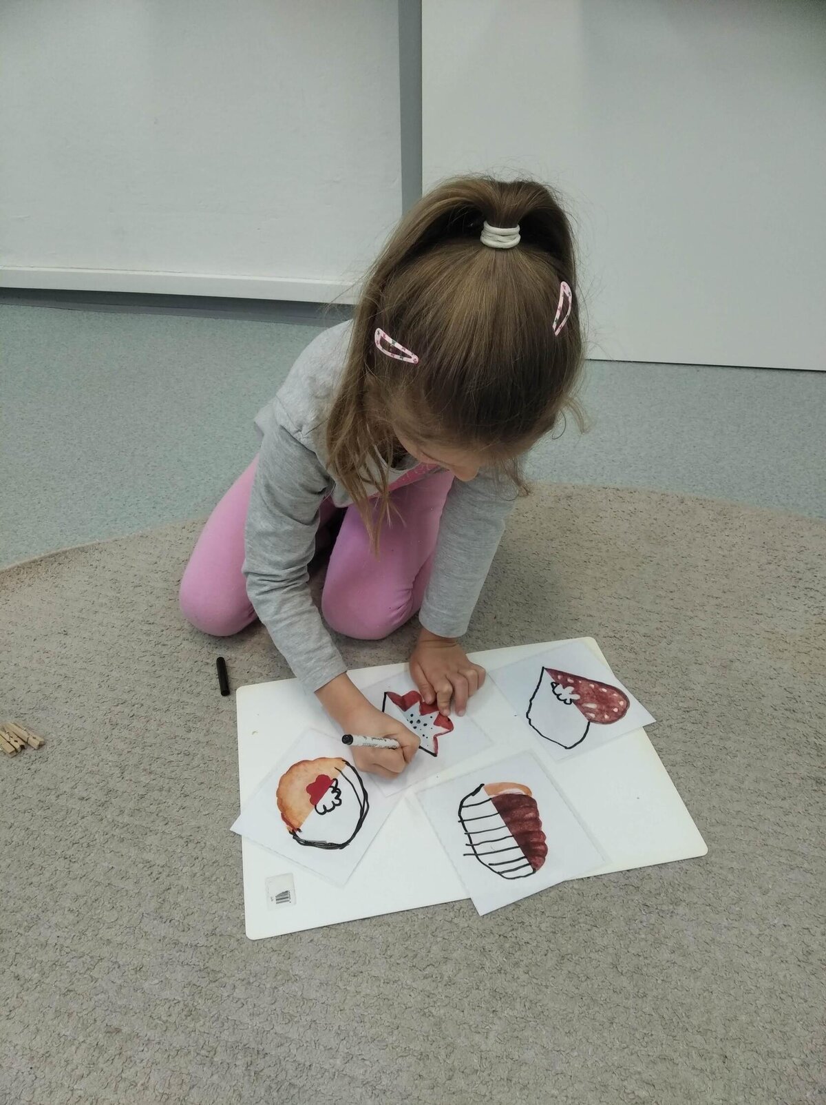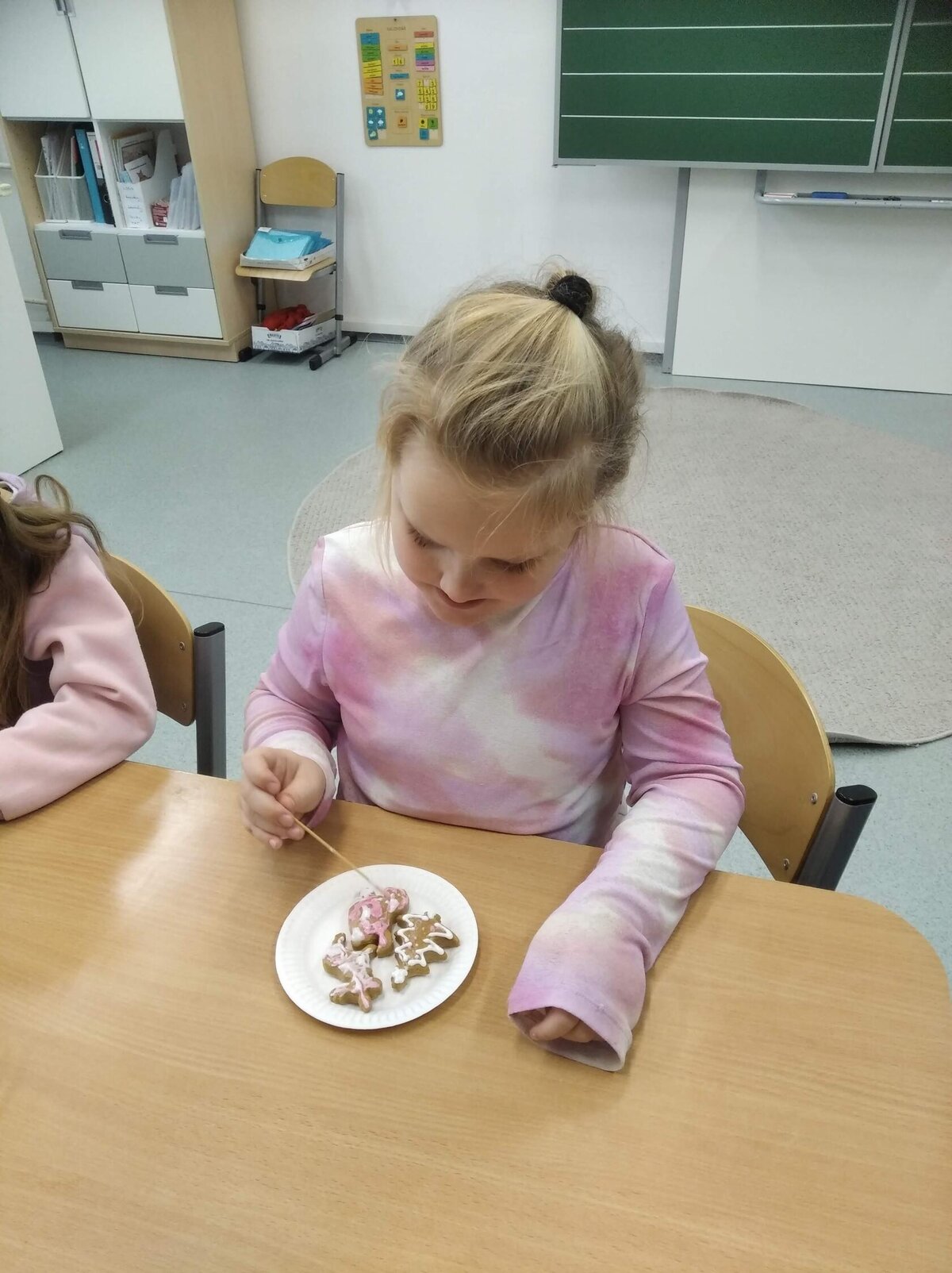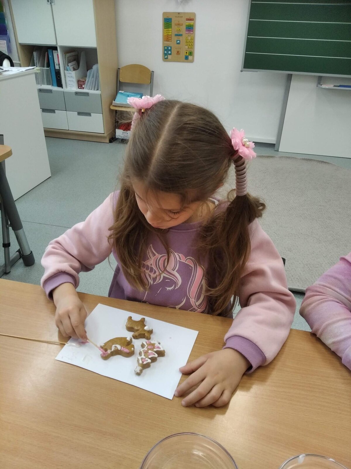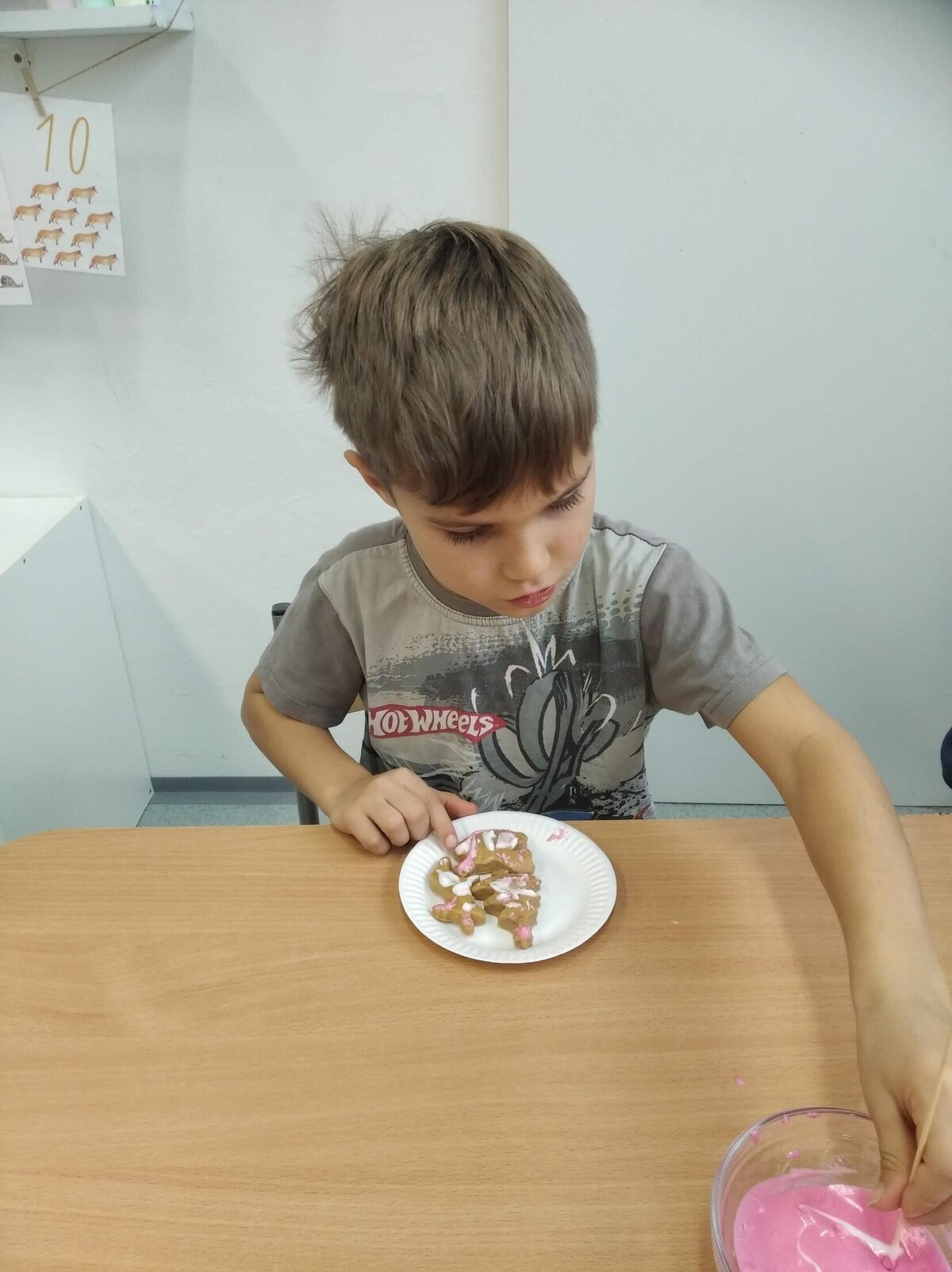 Nezaháleli jsme ani s učením. Ve zrakovém vnímání jsme trénovali barevné řady, hráli Kimovu hru, překreslovali čárky mezi body a dokreslovali chybějící části na obrázcích. Grafomotorické prvky jsme procvičovali na velké tabuli, na stíratelných tabulkách i na papíře. Zaměřili jsme se na čerty a anděly, jednotažky a horní oblouky. V oblasti matematického vnímání jsme počítali rozinky na cukroví, přiřazovali správně počty k puntíkům a počítali pomocí ořechů. Řečové dovednosti jsme rozvíjeli při práci s knížkou a průběžně procvičovali slabiky i počáteční hlásky. Vyzkoušeli si Orffovy hudební nástroje a poznali kouzlo zvonečků, kterému patří vždy jeden tón.