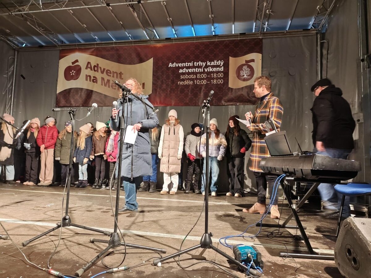 V neděli jsme společně zahájili advent na náměstí Míru na Mělníku vystoupením při rozsvěcení vánočního stromečku. Žáci naší školy zazpívali koledy, zahráli na hudební nástroje a pod vedením kolegy T. Bubly vytvořili krásnou předvánoční atmosféru.