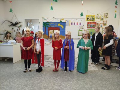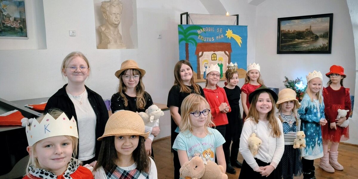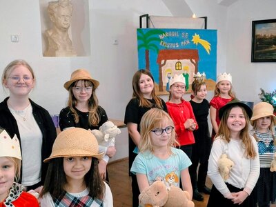 Narodil se Kristus Pán, veselme se…, zpívali žáci hudebně dramatického kroužku v Centru seniorů Mělník. Ve svém vystoupení nejen zpívali za doprovodu klavíru a rytmických hudebních nástrojů, ale také recitovali vánoční a zimní verše. Některé koledy byly zpestřeny pohybovými aktivitami. Hlavním motivem poetického vystoupení se stala vánoční hra o narození Ježíška v Betlémě, ve které nechyběli tři králové, pastýři s ovečkami a ani král Herodes.