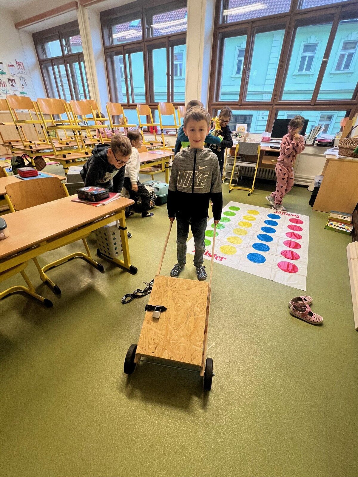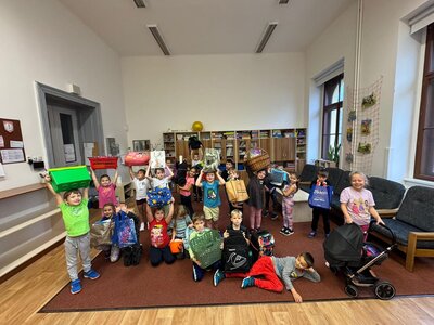 Dne 12. 11. zažila naše škola tak trochu jiný den. Na chodbách jste mohli spatřit žáky s podběrákem, nákupním vozíkem ze supermarketu, prádelním hrncem, volební urnou či přepravkou, z které místo domácího mazlíčka vykukovaly učebnice a sešity. Proč? Protože No Bag Day, čili den bez školních batohů, zato ale s co nejoriginálnější taškou-netaškou…