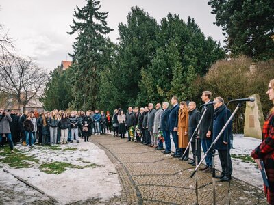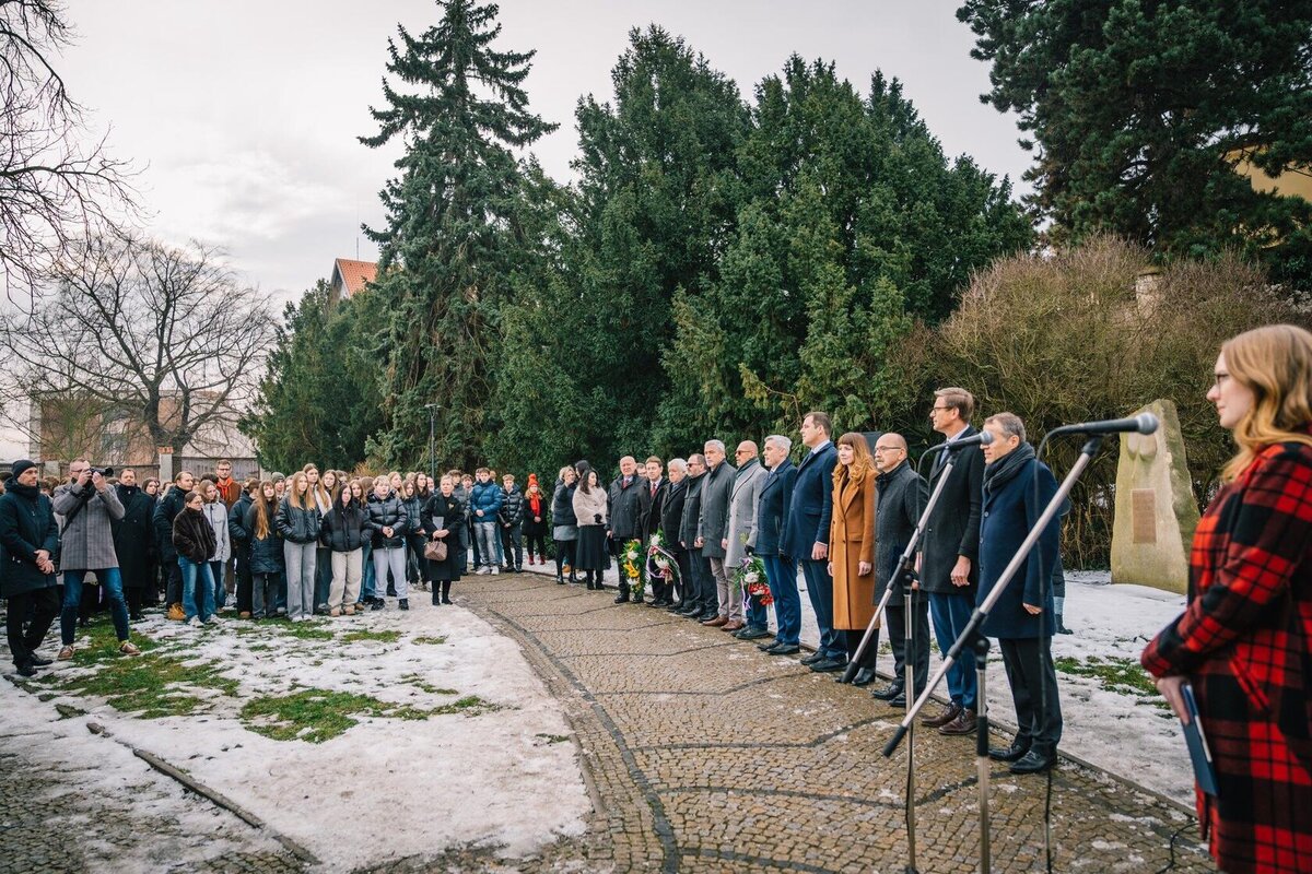 Na pietní akci, která se uskutečnila v Jungmannových sadech, si žáci vyslechli projevy Jeho Excelence francouzského velvyslance v ČR Stéphana Louise Josepha Crouzata, poslance Parlamentu ČR pana Martina Kupky a starosty Mělníka Tomáše Martince. Ve svých vystoupeních vzdali hold památce mladého a mimořádně statečného studenta, jehož odkaz má svůj význam i ve víru současných událostí.