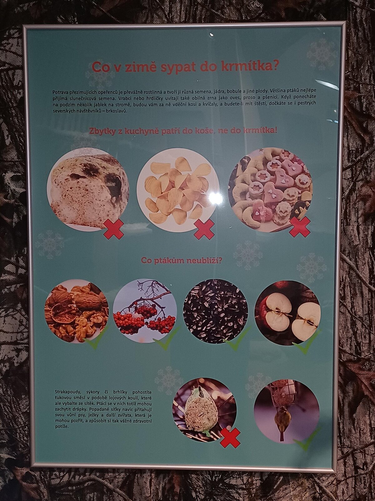 Tato výstava hravou formou představuje, jak se zvířata a rostliny vypořádávají se zimou. Děti mohly prolézt medvědím brlohem, nahlédnout do liščí nory nebo najít vrápence. Také se dozvěděly, jak zvířata mění chování, srst a jídelníček, a jak rostliny přežívají mráz. Během programu si vyrobily vlastní ptačí sušenku.