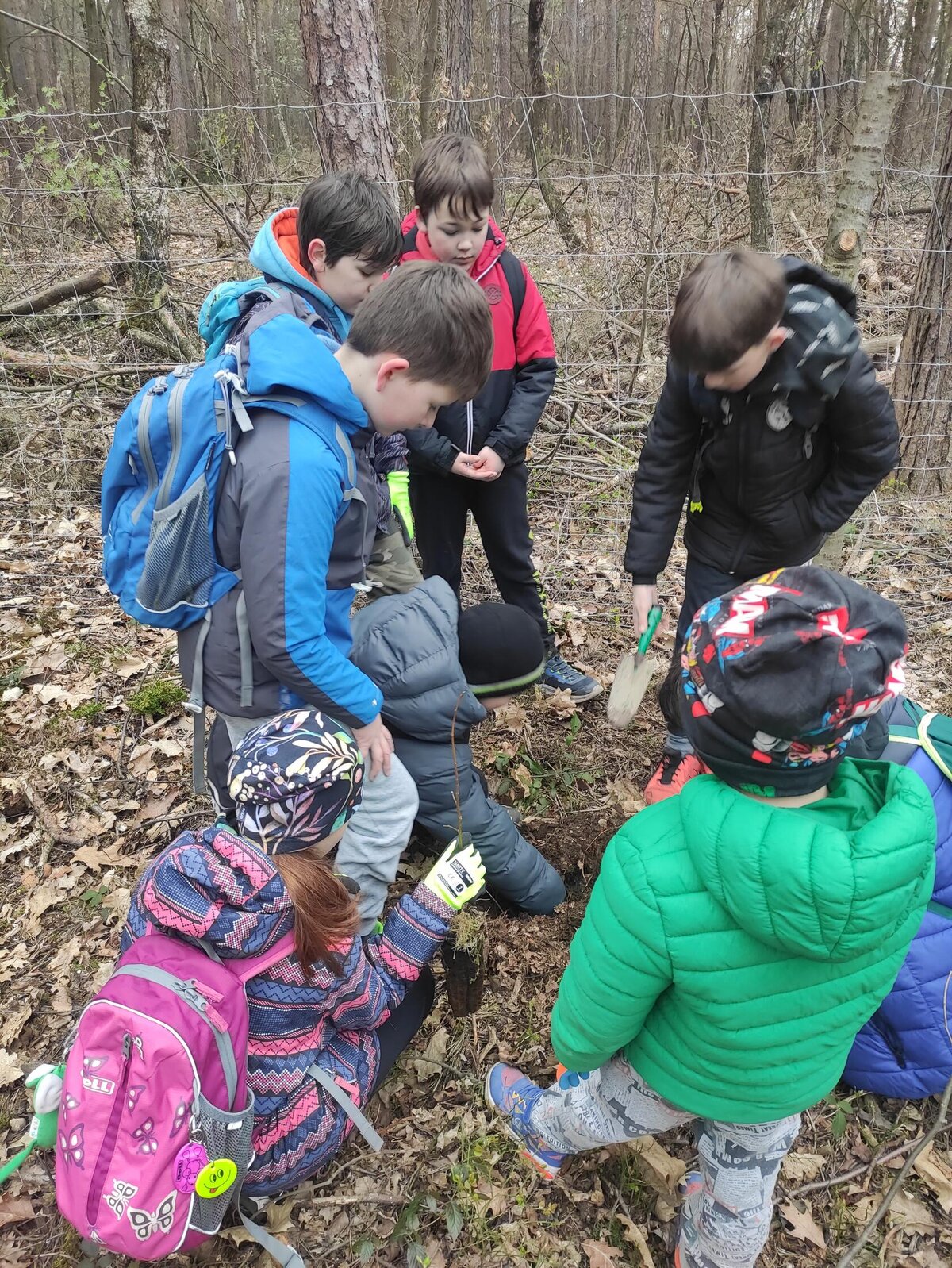 Děti se s velkým nadšením zapojily do sázení nových stromků – buků, dubů i javorů. Pracovaly s chutí a opravdovým nasazením. Motyky svištěly vzduchem a každý zasazený stromek byl malým krokem k budoucnosti našeho lesa.