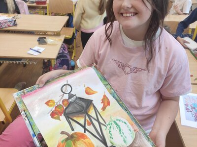 Hotová díla jsou nyní vystavena ve vestibulu školy, kde vzbuzují radost i obdiv všech.