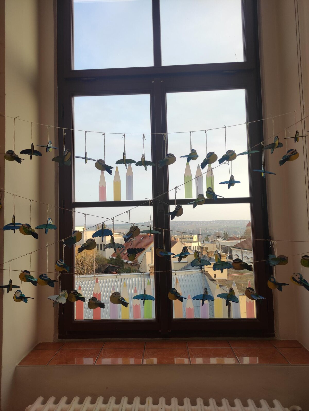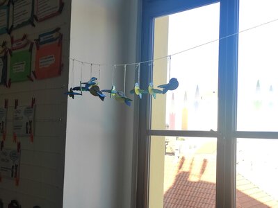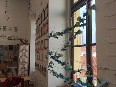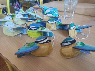 V pracovních činnostech si žáci procvičují a zdokonalují jemnou motoriku při stříhání, lepení a sestavování papírových výrobků. Tentokrát si každý vytvořil svou vlastní sýkorku z kartonu, která vypadá téměř jako živá.