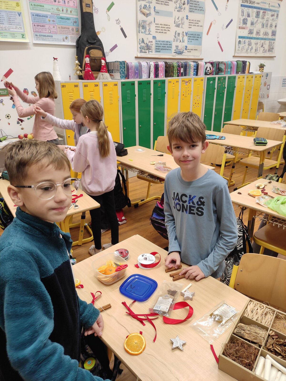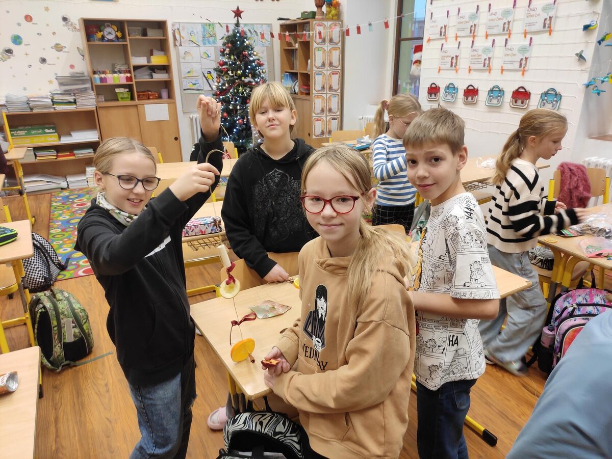 Dnes naši žáci s velkým nadšením a kreativními nápady vyzdobili školu vánočními závěsy z přírodních materiálů, které provoněly každý kout školy. Díky jejich šikovnosti a fantazii se z naší školy stal opravdu útulný a voňavý vánoční svět.
