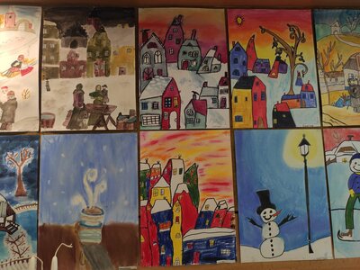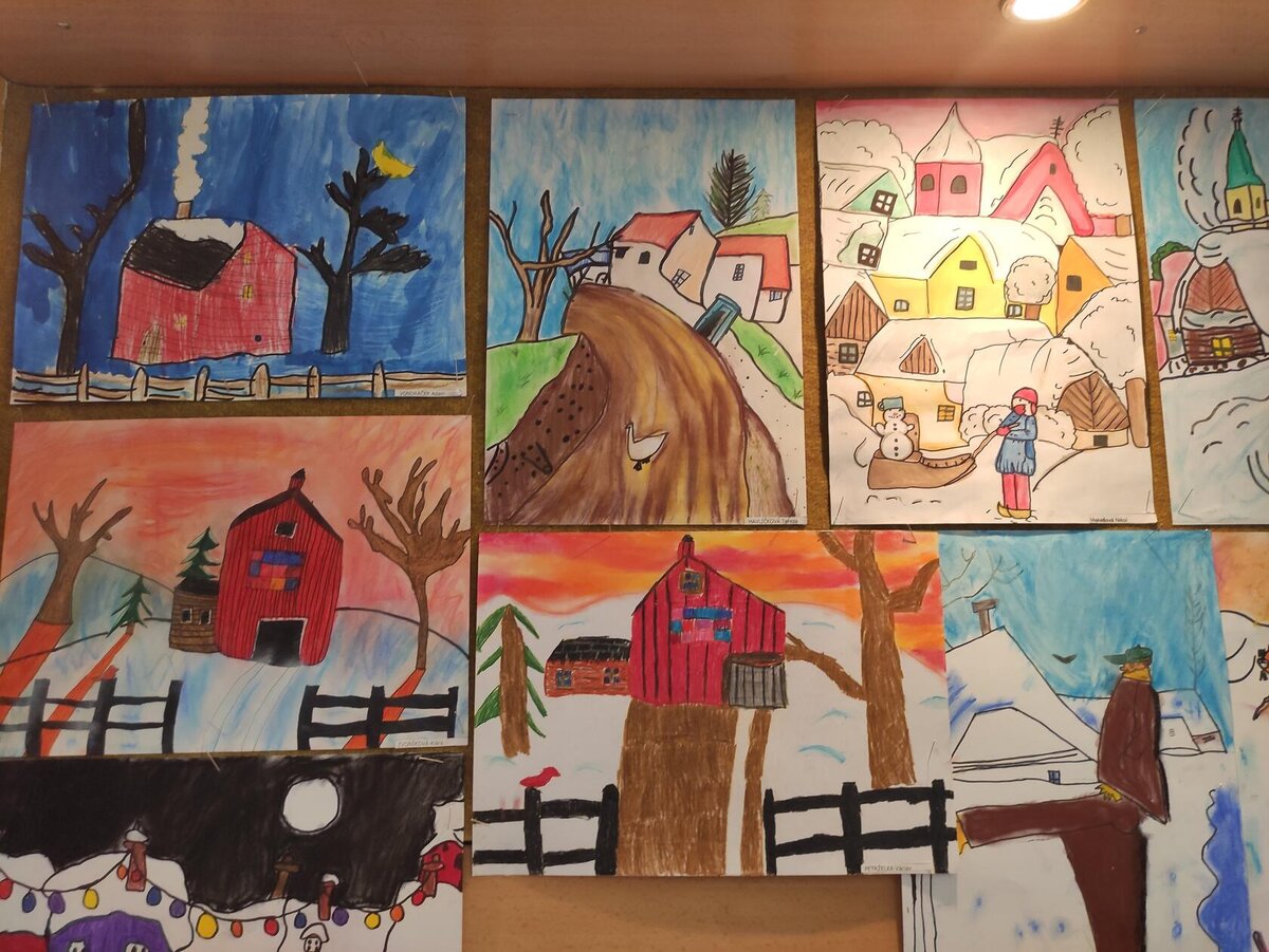 Každý obrázek je malým uměleckým kouskem, který přináší do školy kouzlo a radost zimních dnů.