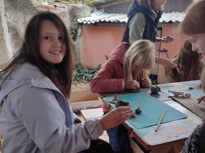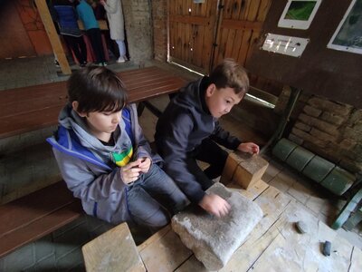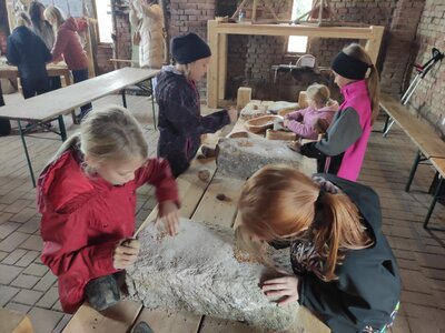 Kopali v zemi, objevovali tajemné kostry, mlátili obilí jako pravěcí farmáři, vyráběli keramické sošky a nádoby. Také si pletli vlastní kožené oblečení. Dokonce z kamenů vyráběli pěstní klíny – „jako praví lovci a sběrači!“, smáli se děti.