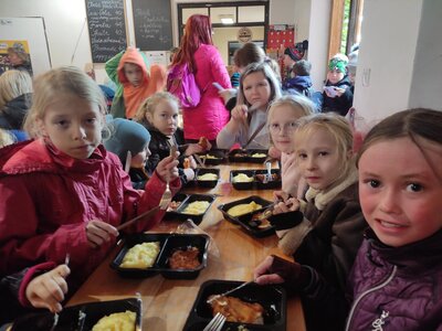 Den plný objevů a dobrodružství zakončili výbornou bramborovou kaší s řízkem. Bylo to spousta smíchu, zážitků a nové vědomosti – den, na který budou dlouho vzpomínat!