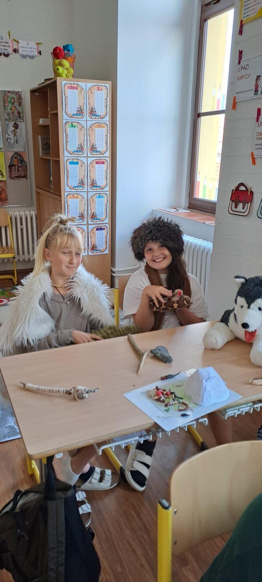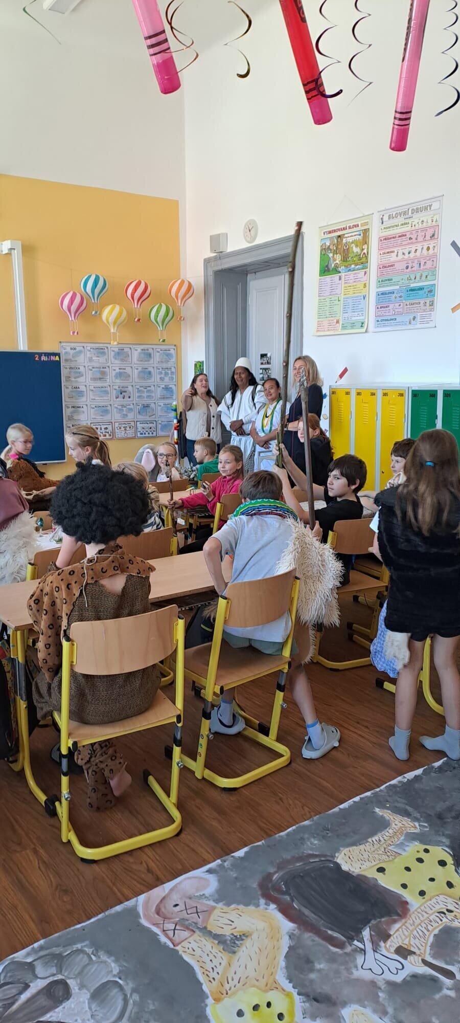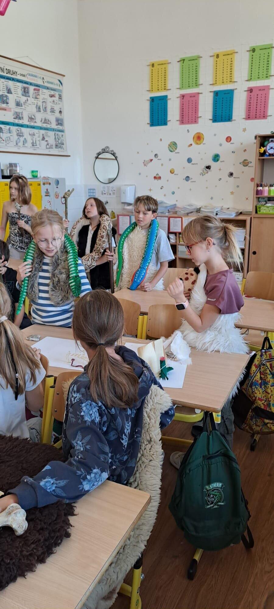 Uprostřed vlastivědy, kde jsme se zrovna věnovali výkladu o lovcích a sběračích.....se najednou otevřely dvěře a ....nám zůstaly pusy dokořán!