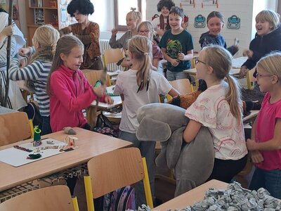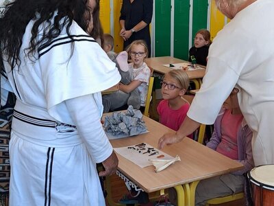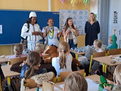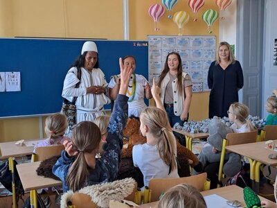 Děti krásně odprezentovaly své poznatky a nakonec ještě vzácné návštěvě stačily zazpívat dvě české písničky. Poté již následoval vodopád otázek a odpovědí.