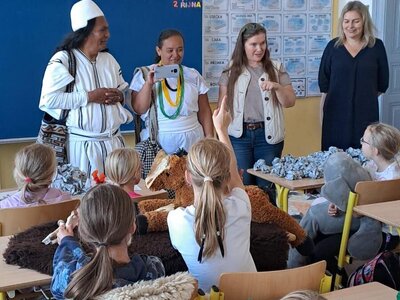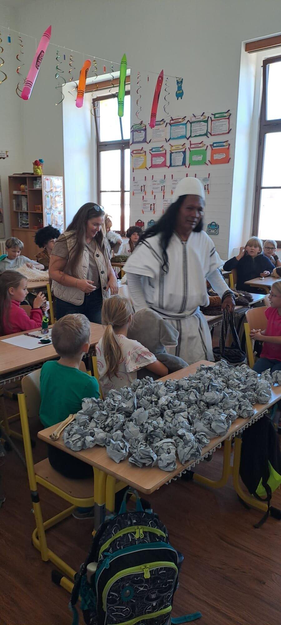 Zástupci indiánské komunity se přijeli na naše malé umělce podívat k nám do naší třídy.