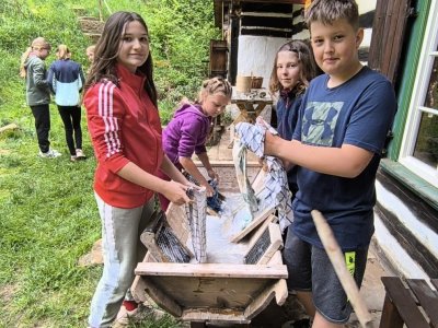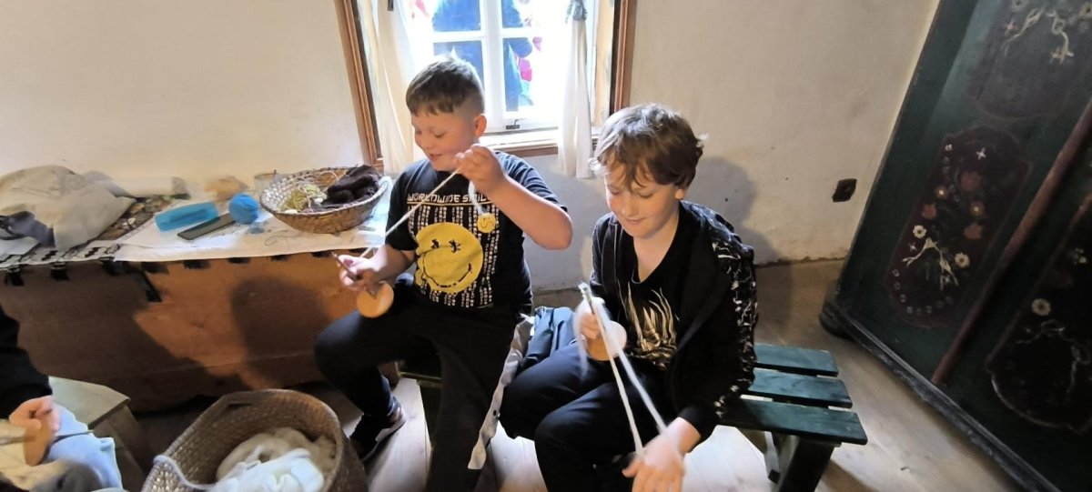 V Domě zaniklých řemesel ve Vidimi jsme se zúčastnili interaktivního výukového programu na téma Zaniklá řemesla a Včely. Vyzkoušeli jsme si výrobu provázků, praní prádla na valše, pečení chleba, bramborových placek, drátkování, práci s vřetánkem, stloukání másla. Také víme mnoho nových informací o významu včel v přírodě. Vše se nám povedlo náramně a zároveň jsme se výborně pobavili.