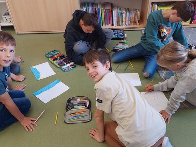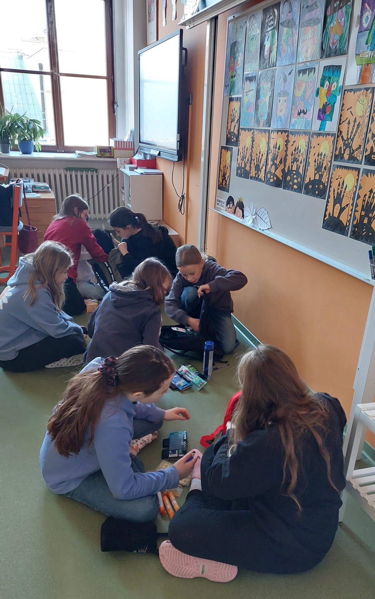 Vytvořili jsme společná výtvarná díla v menších skupinách na téma "Mít své místo".